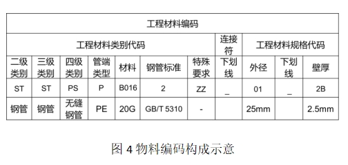 通常一個工廠對象具有十余條乃至數十條屬性,確保這些屬性信息在工程設計、采購、建造、交付直至運維的各階段間傳遞的完整性與準確性是一個難點。如果將這些屬性按照一定的規則進行分類并代碼化表達,這樣,無論有多少條屬性信息都會簡化成一條物料編碼屬性,那么,工程周期各階段,僅需要保證物料編碼的正確傳遞就可以了。物料編碼的示例如下: