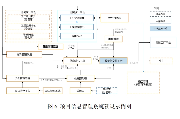 一般來講,項目由設計單位、供應商單位、施工單位等多方參與共同完成,數字化交付的內容也應包含項目所有參與方在各階段產生的數據、文檔[3],需要構建完整的項目信息管理系統,才能實現各參與方、各階段信息的不斷有序匯集。某項目信息管理系統建設如下: